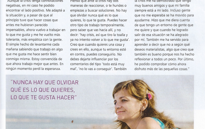 Aquesta entrevista a la revista Psychologies va sortir fa 2 anys aproximadament, justament en un monogràfic de com superar els obstacles de la crisi. Me la va fer la periodista Núria Berlanga i la foto [...]
